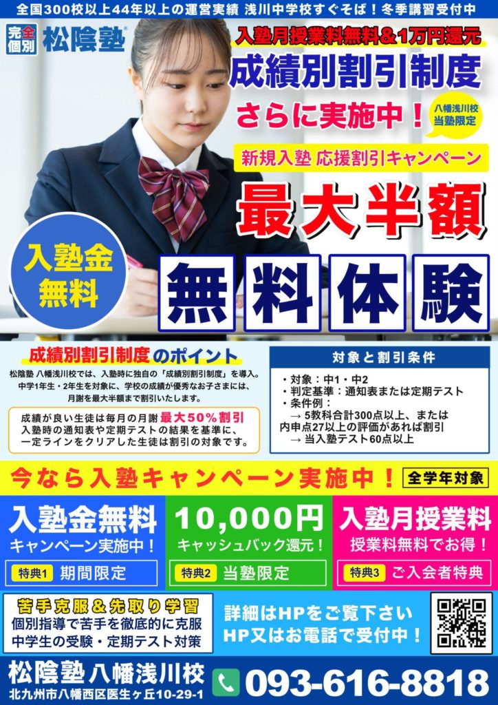 八幡西区で定期的に松陰塾八幡浅川校のチラシを配布しております。